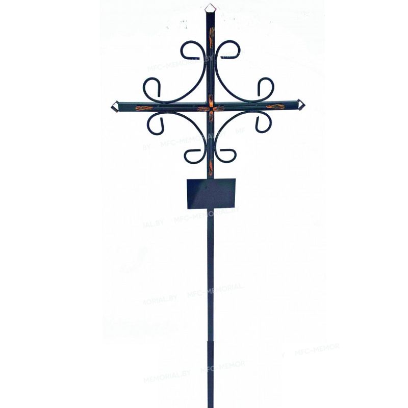 Крест металлический четырёхконечный католический с коваными элементами.